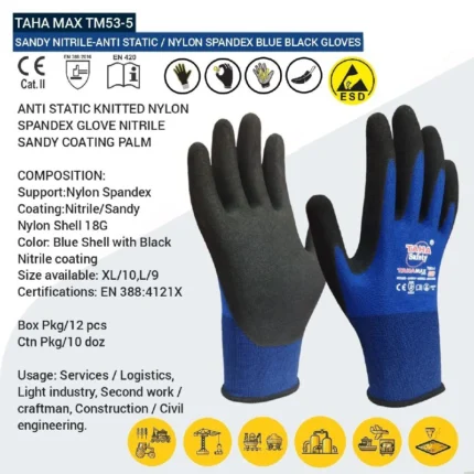 دستکش آنتی استاتیک طاها مکس مدل TM53-5